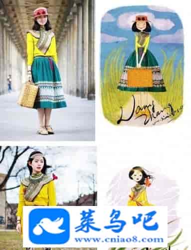 服装手绘插画效果图素材 卡通可爱时装画手稿设计临摹对比