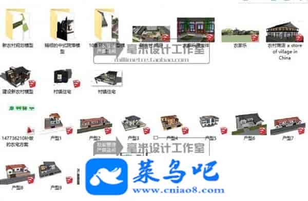 美丽乡村规划SU模型新农村田园别墅农家sketchup建筑景观