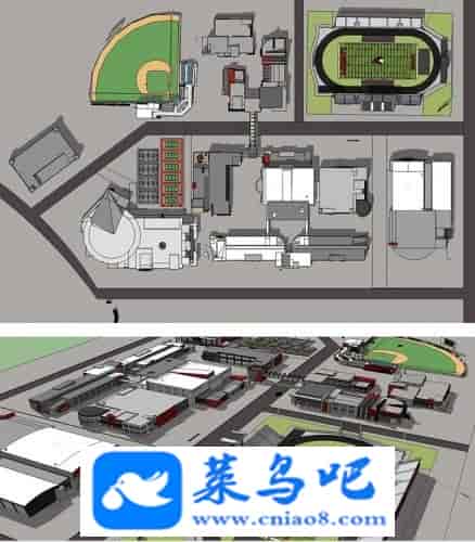 欧美高校教育建筑 sketchup草图大师模型 体育建筑大学校