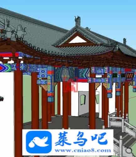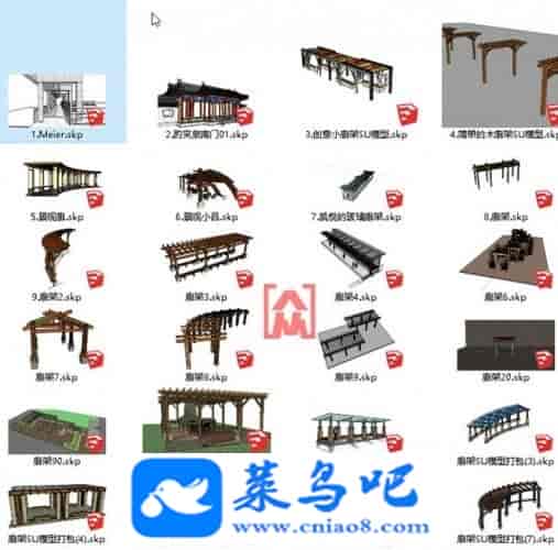 A64中式木结构景观花架廊架玻璃廊架公园休息廊檐长廊SU模型合集