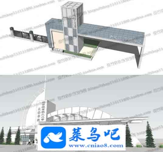现代景区学校公司大门门房合集SU草图大师建筑Sketchup设