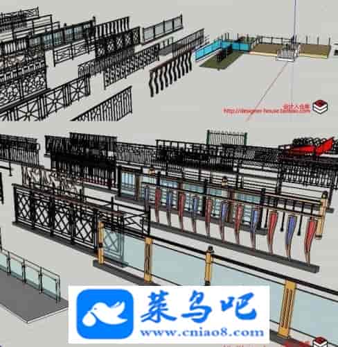 su栏杆护栏围墙栅栏铁艺建筑 sketchup园艺围栏景观草图大师模型