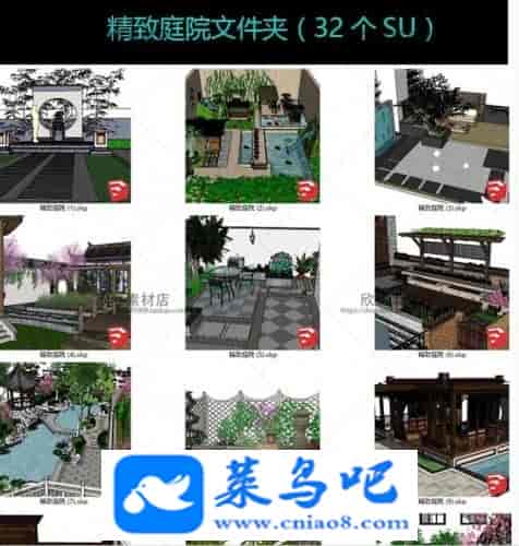 草图大师149款庭院别墅屋顶花园SU模型景观设计新中式日