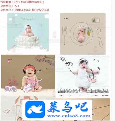 E04儿童宝宝新生儿PSD模板素材彩色黑白手绘插画线条设计