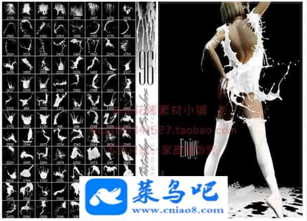 96款高清晰牛奶油漆泼溅喷溅效果PS笔刷合成叠图PS笔刷后