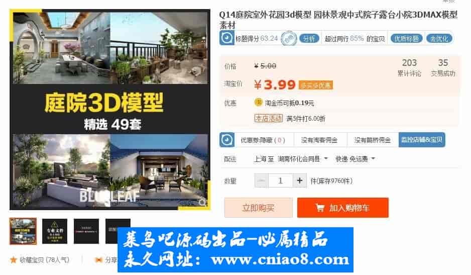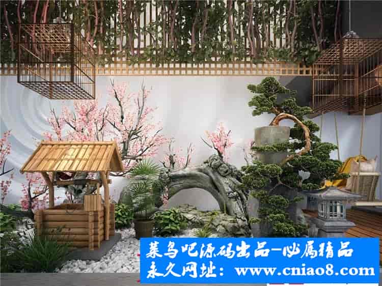 49套阳台庭院室外花园3D模型 新品中式园林景观露台小院