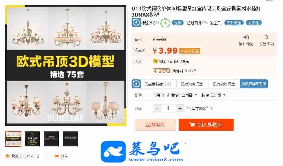 75套新品欧式灯具单体3D模型吊灯室内设计古典水晶灯