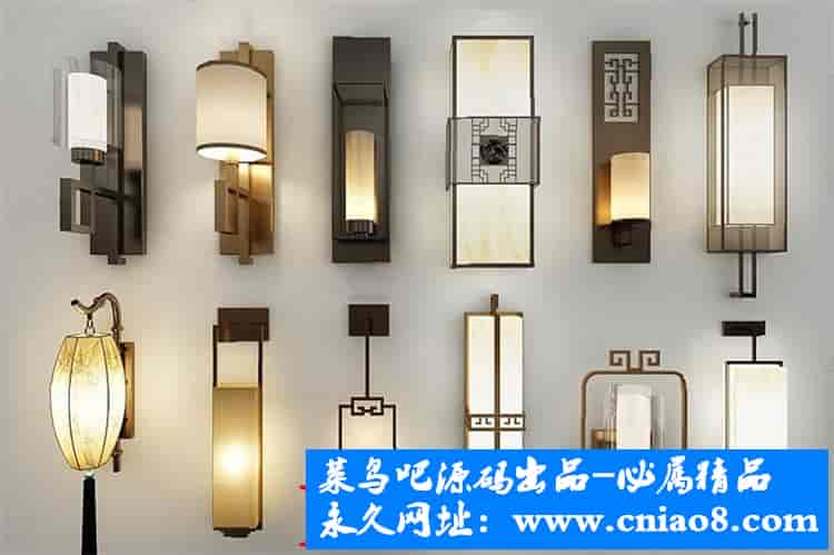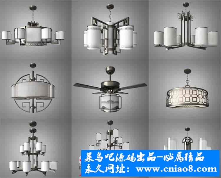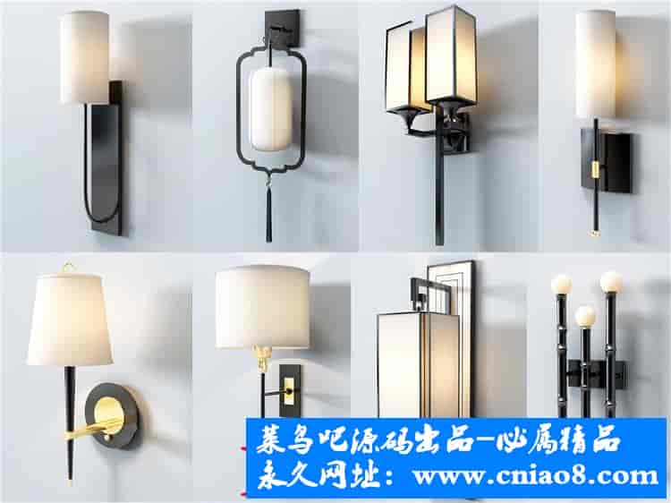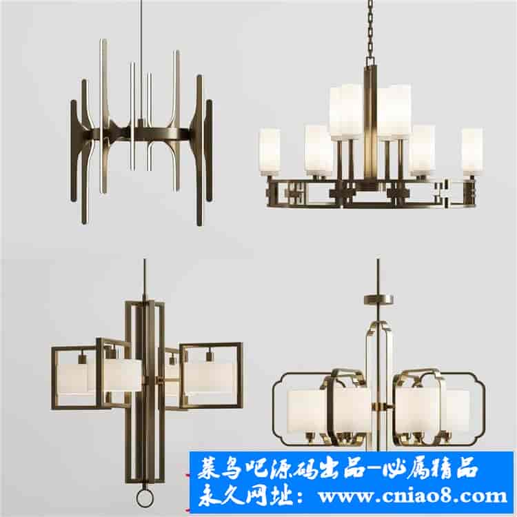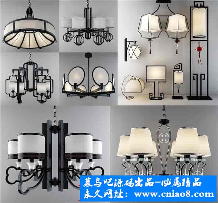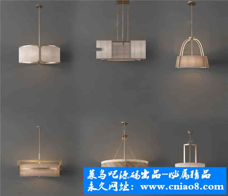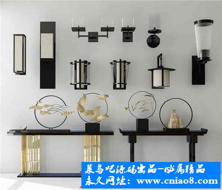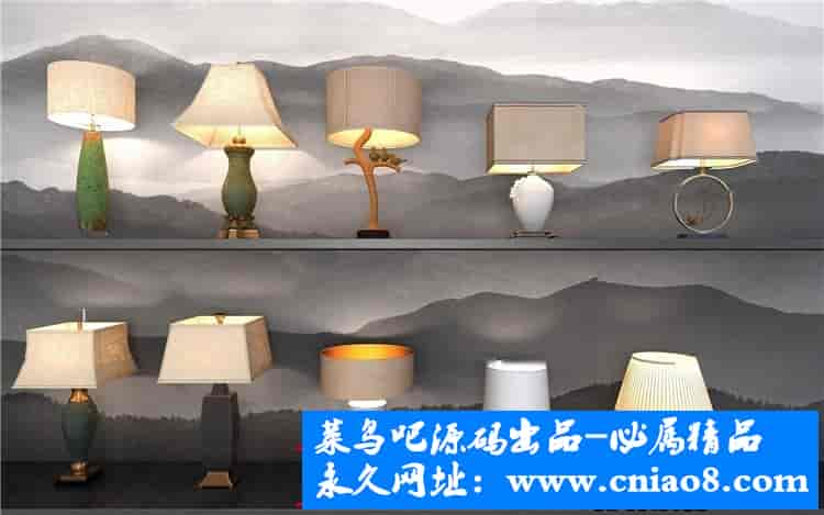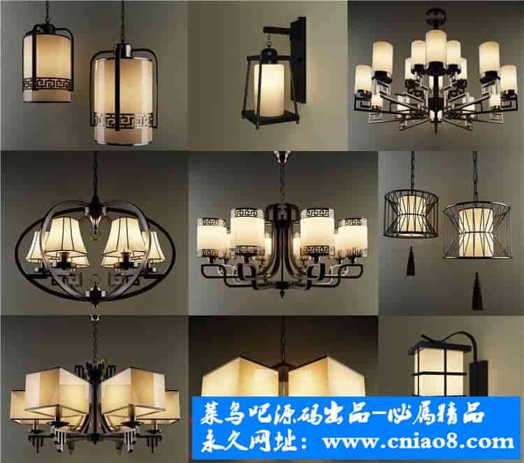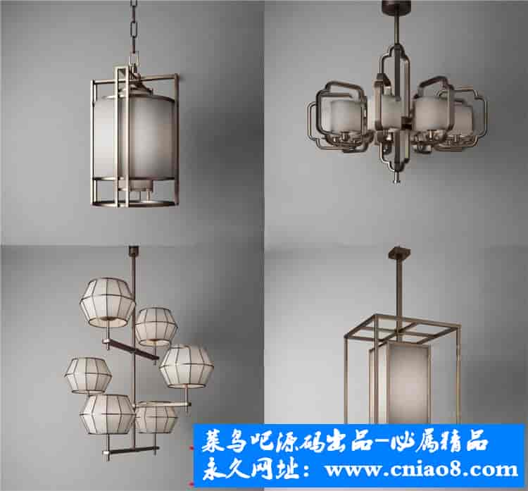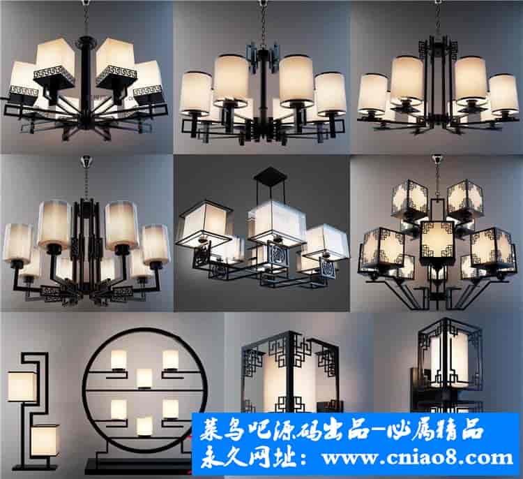 55套新中式灯具3d模型单体金属壁灯台灯吊灯落地灯素材
