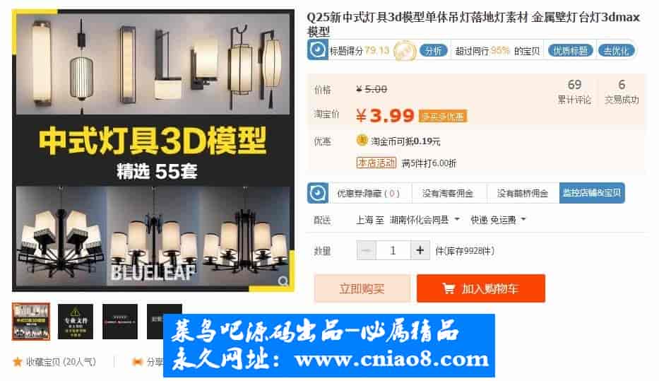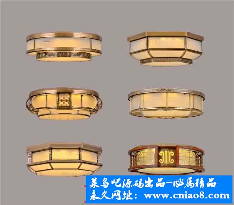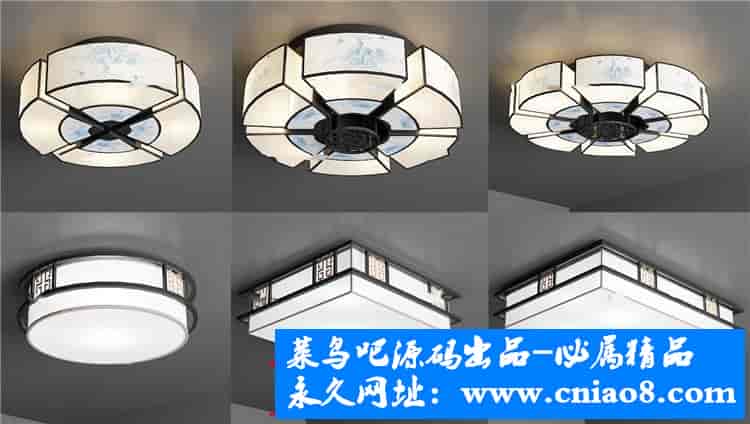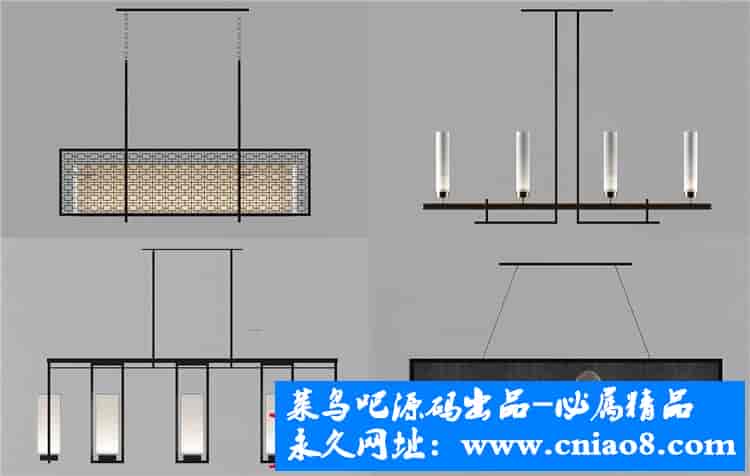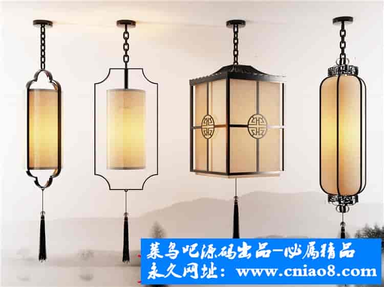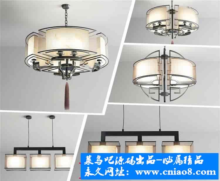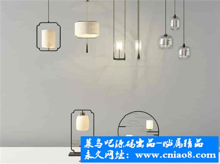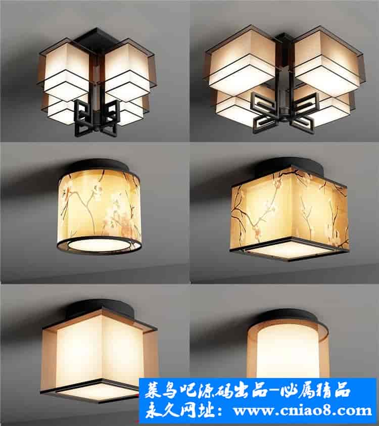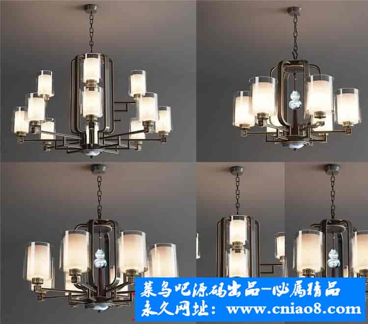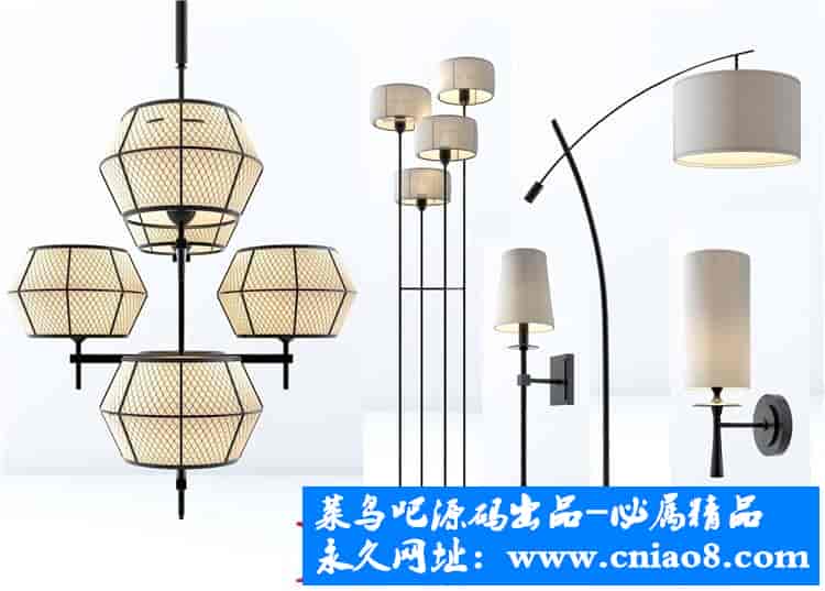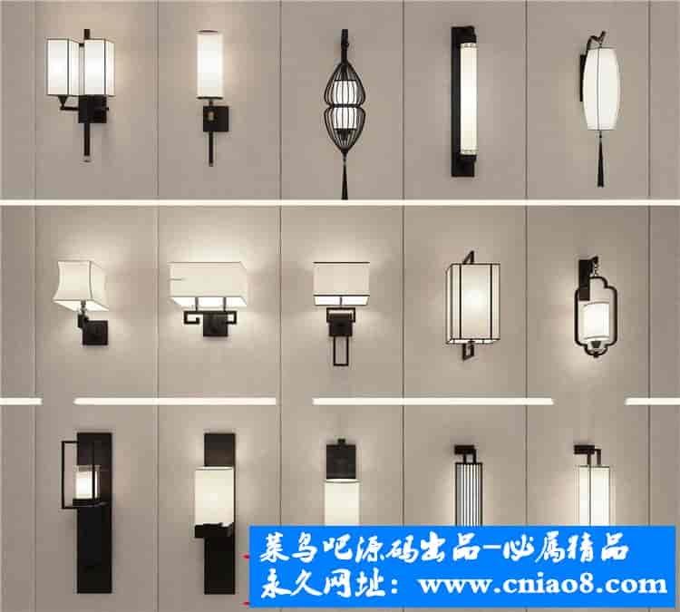 55套新中式灯具3d模型单体金属壁灯台灯吊灯落地灯素材