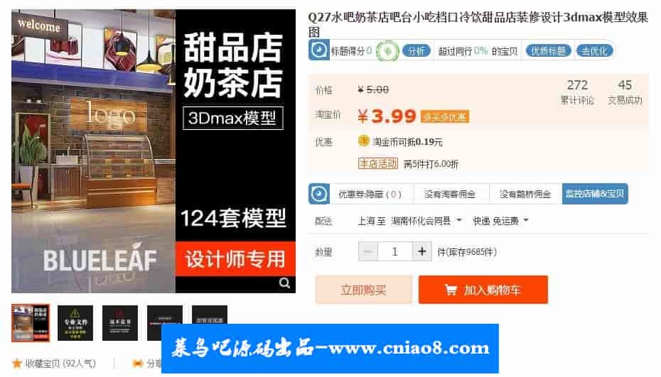 124套水吧甜品奶茶店吧台小吃档口冷饮装修设计3dmax模