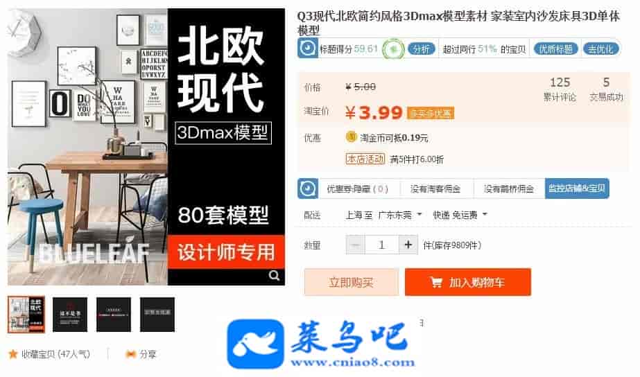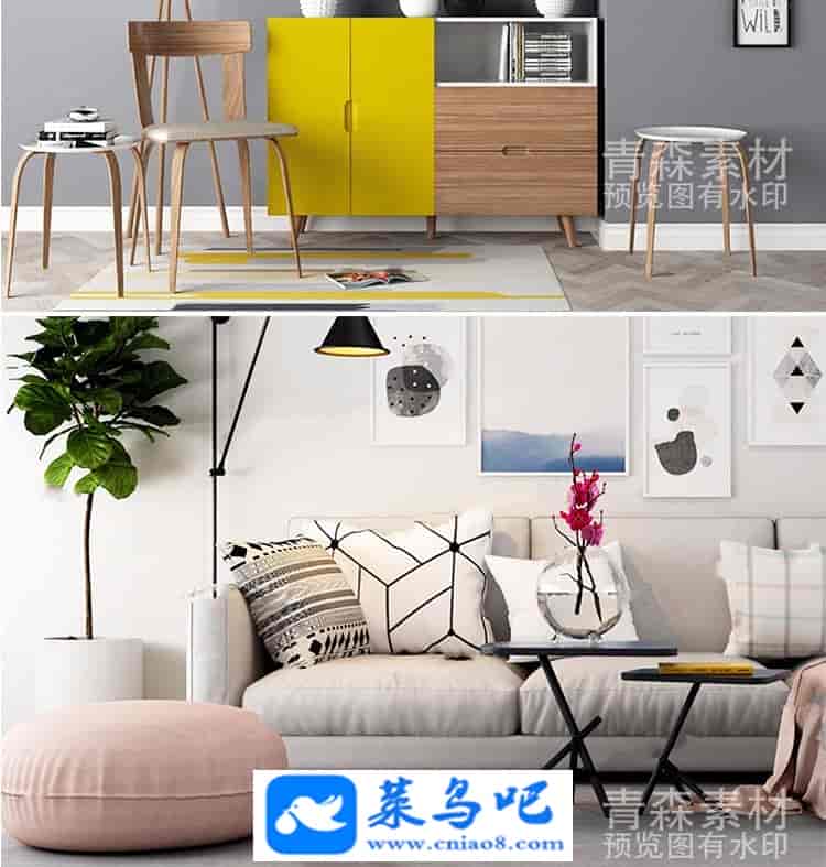 80套现代北欧简约风格3Dmax模型素材 家装室内沙发床具