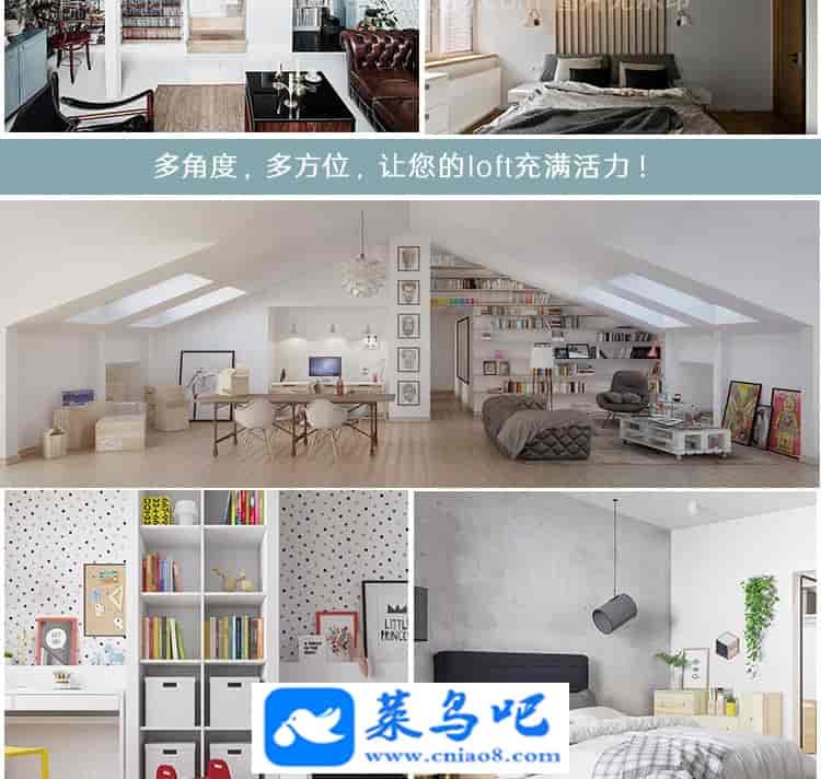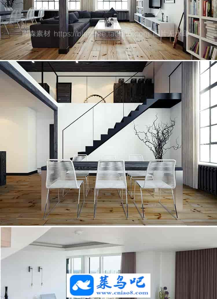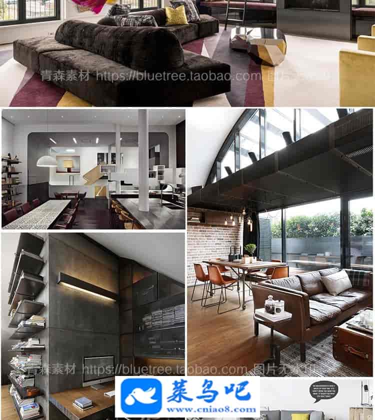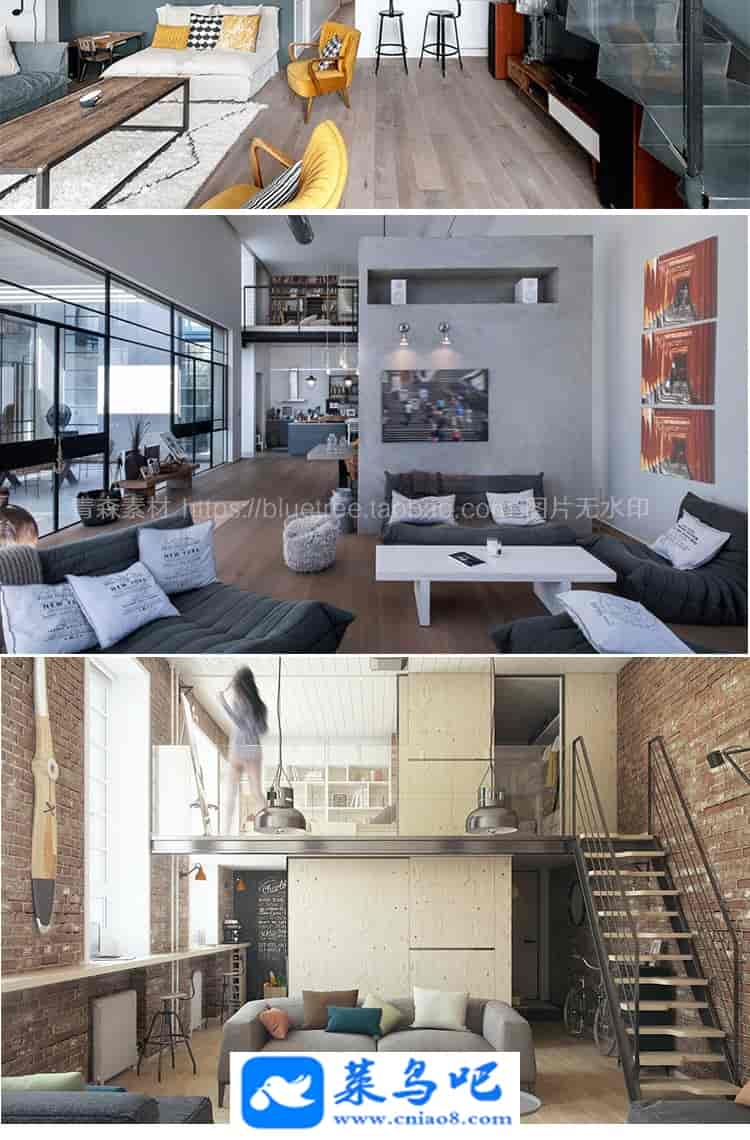 1450张LOFT跃层装修设计效果图工业复式小公寓实景图楼梯
