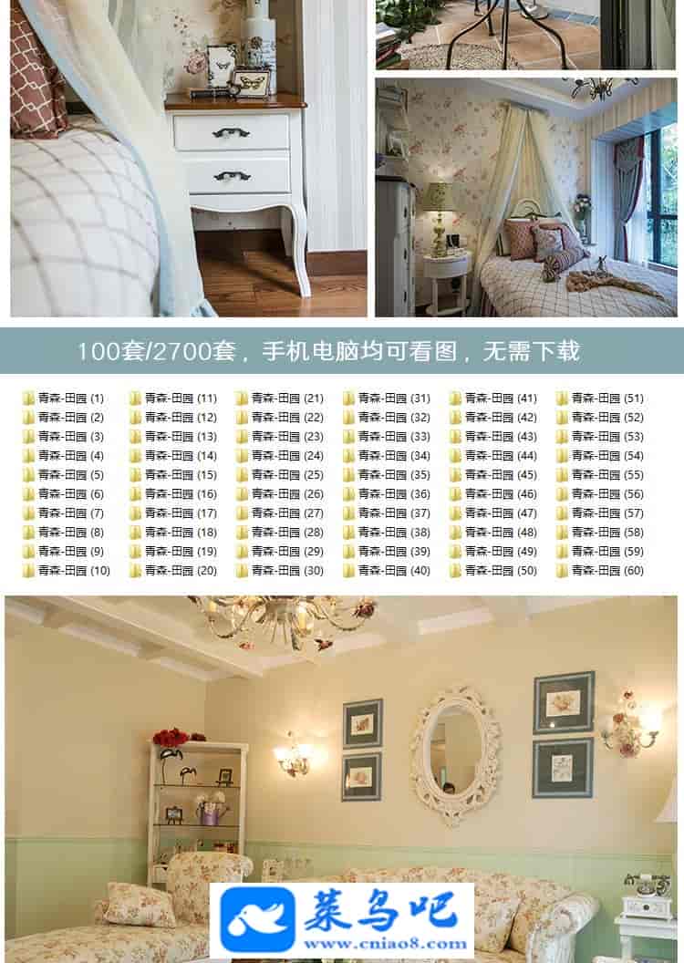 2700张田园装修效果图美式乡村实景室内软装大户型客厅家
