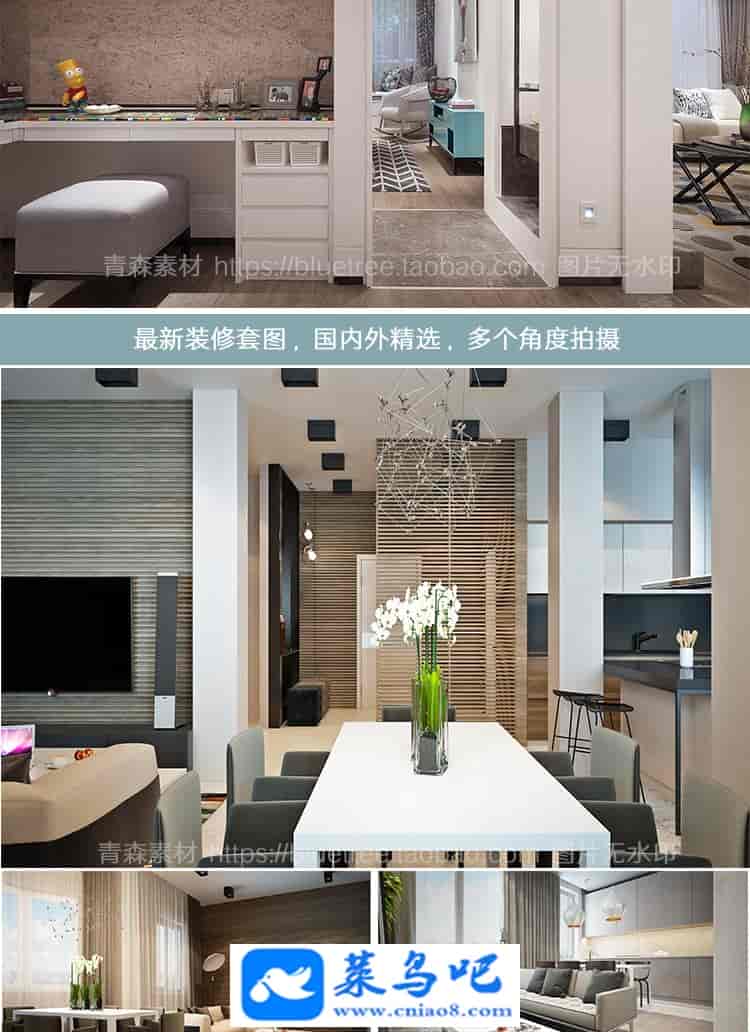 3300张三居室大户型三室一厅两厅房屋客厅吊顶卧室内家装