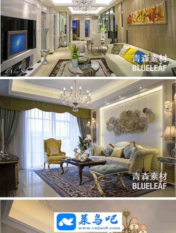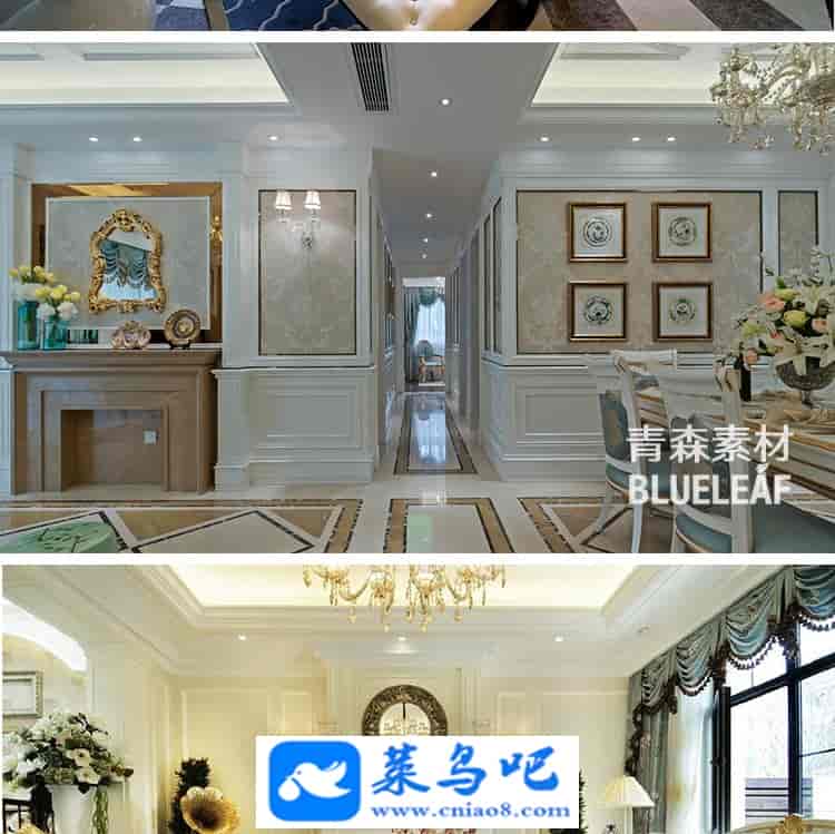 3000张法式装修效设计效果图豪华别墅样板间欧式客厅餐厅