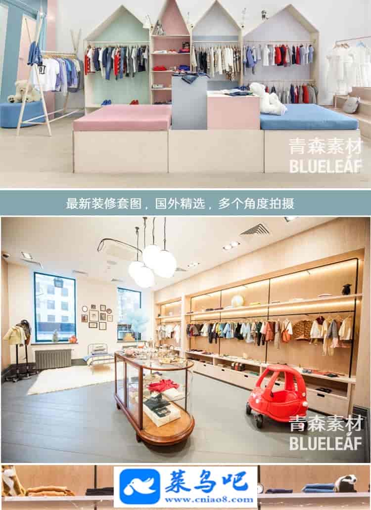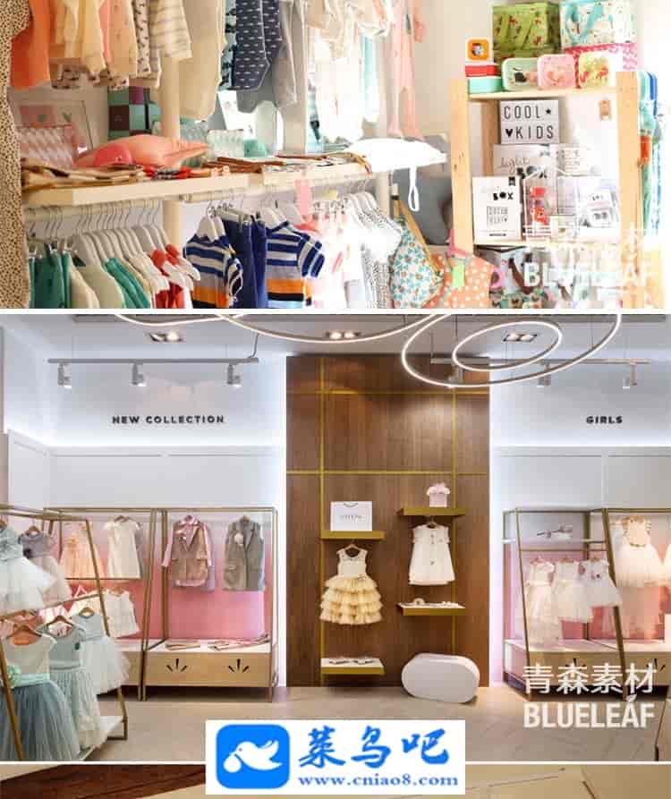 550张欧美童装店装修设计效果图儿童服装店室内布局摆放商