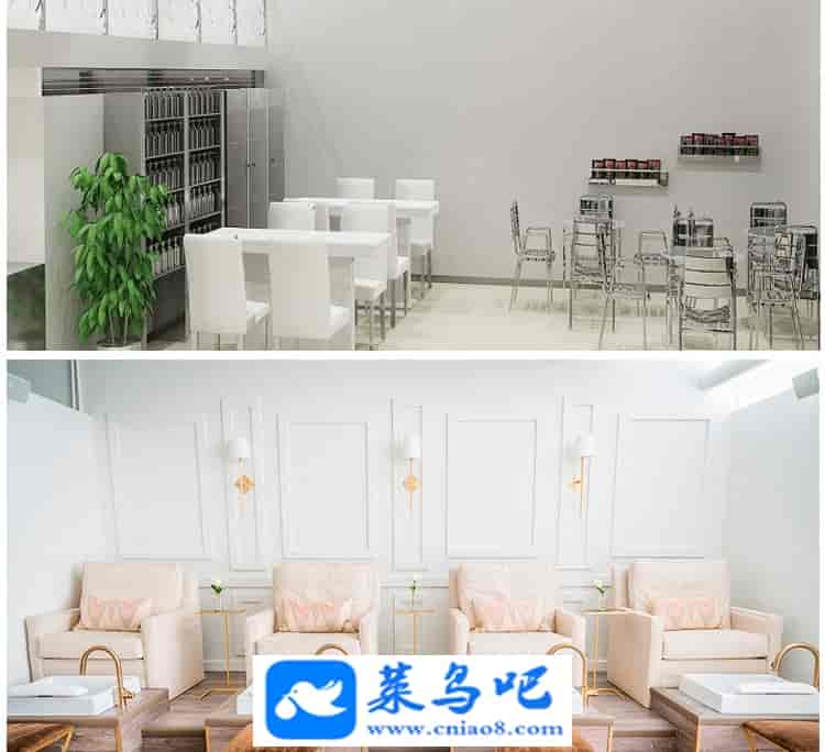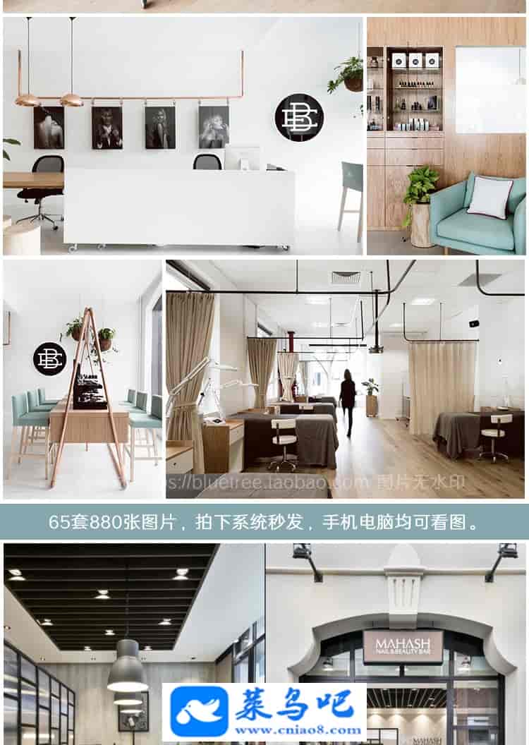 880张美甲店装修设计效果图纹眉半永久店铺室内软装工作室