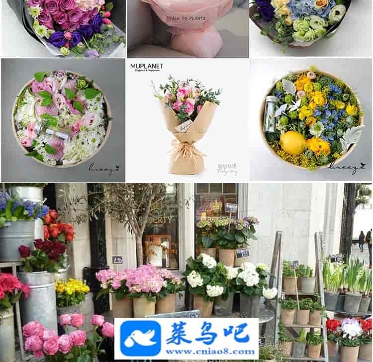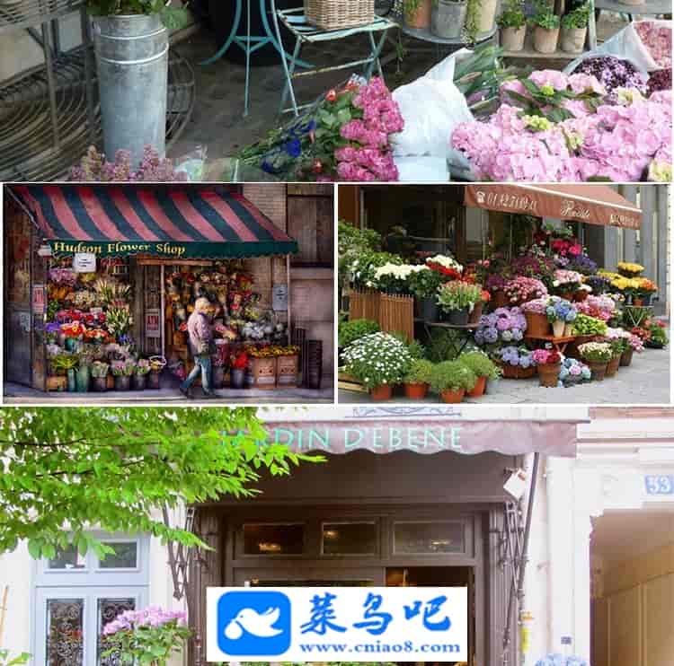 1500张欧美街边清新文艺花店门头摆设花束室内花朵摆放装