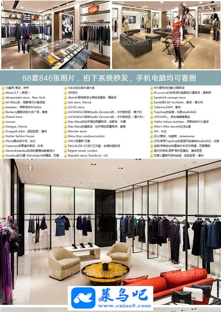 850张国外高端中大型服装店商场男女装专卖店装修设计效果