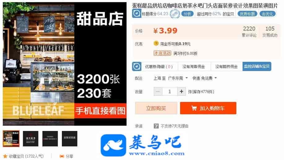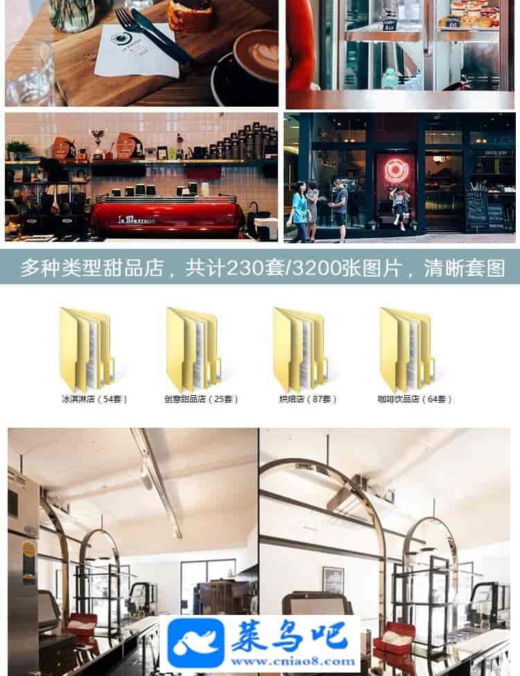 3200张蛋糕甜品烘培店咖啡店奶茶水吧门头店面装修设计效