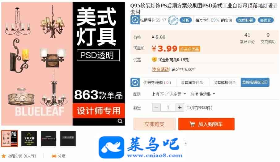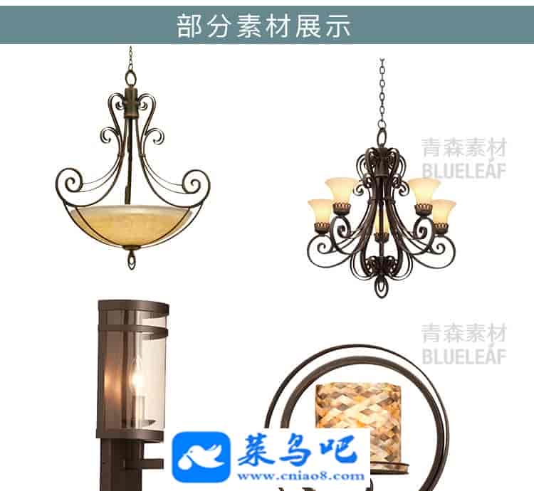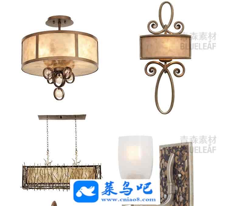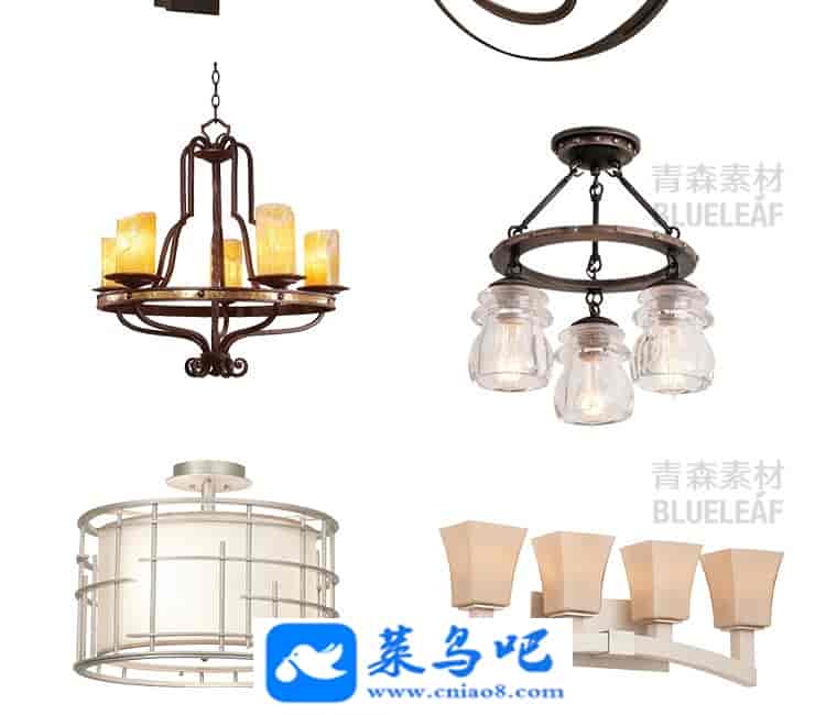 863款软装灯饰PS后期方案效果图PSD美式工业台灯吊顶落