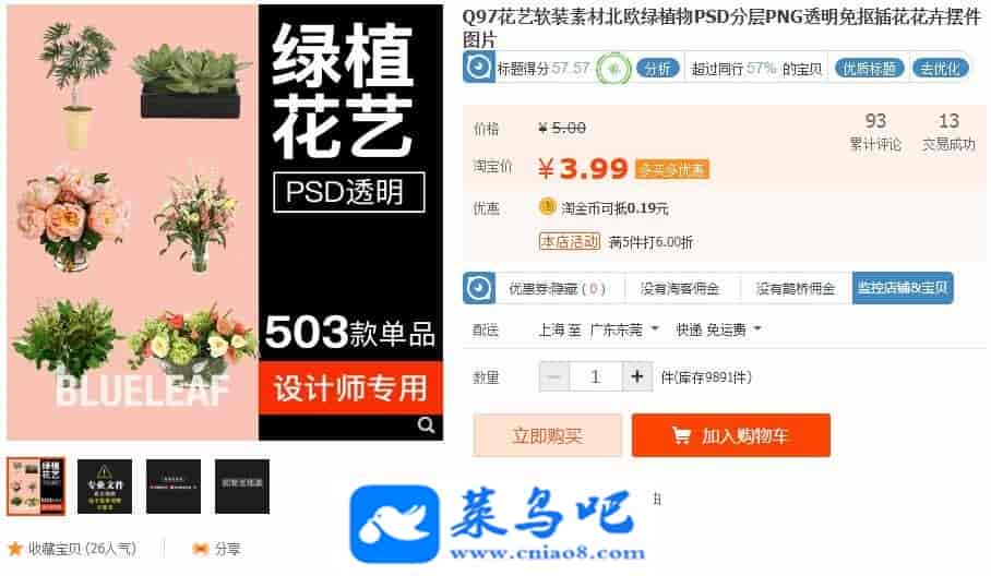 503款花艺软装素材北欧绿植物PSD分层PNG透明免抠插花花