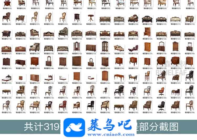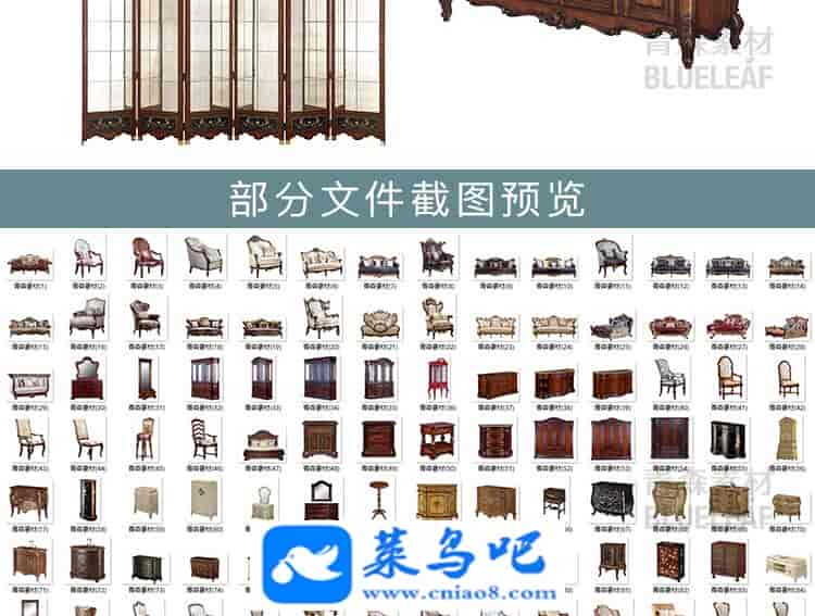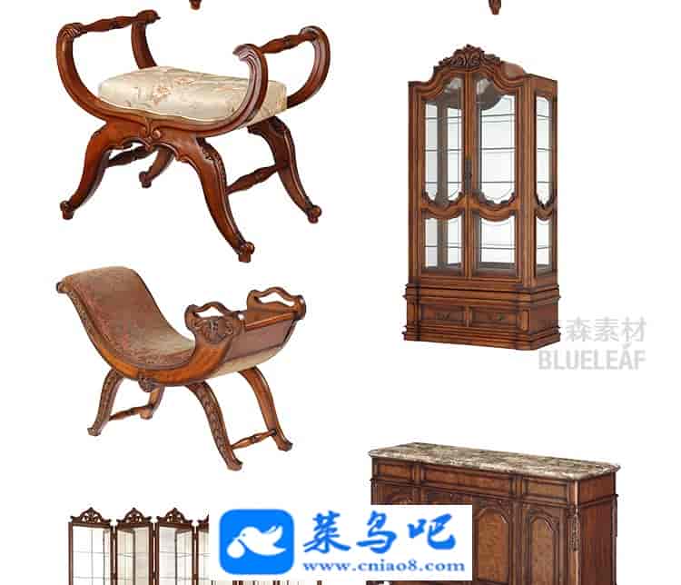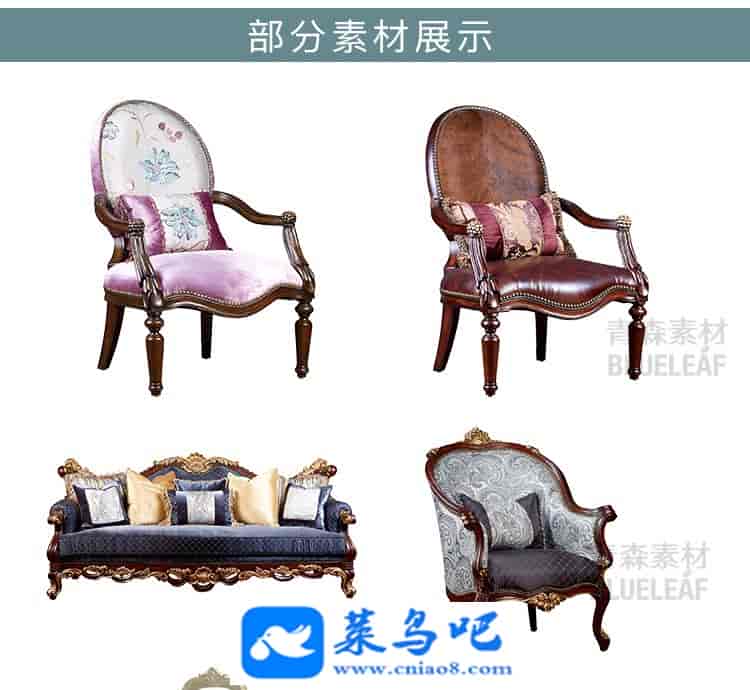 319款法式软装家具PNG透明免抠室内设计PPT方案沙发书柜