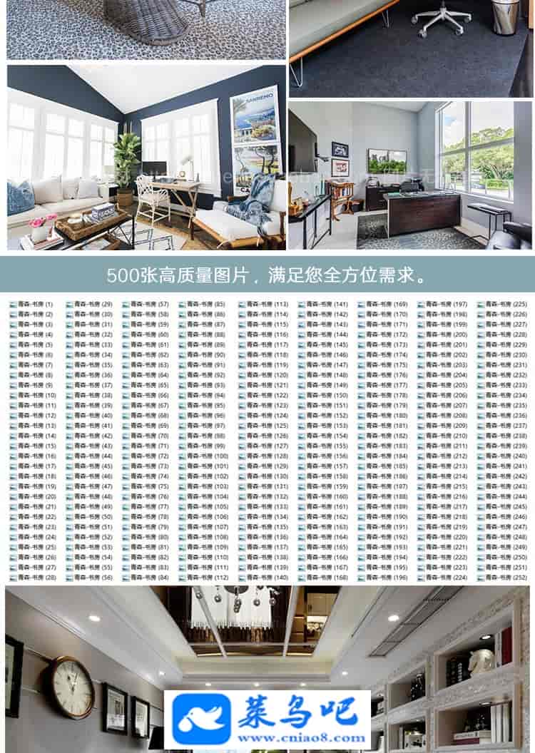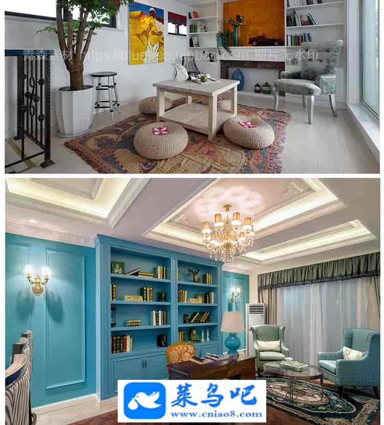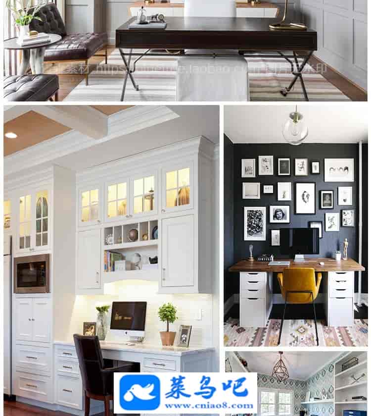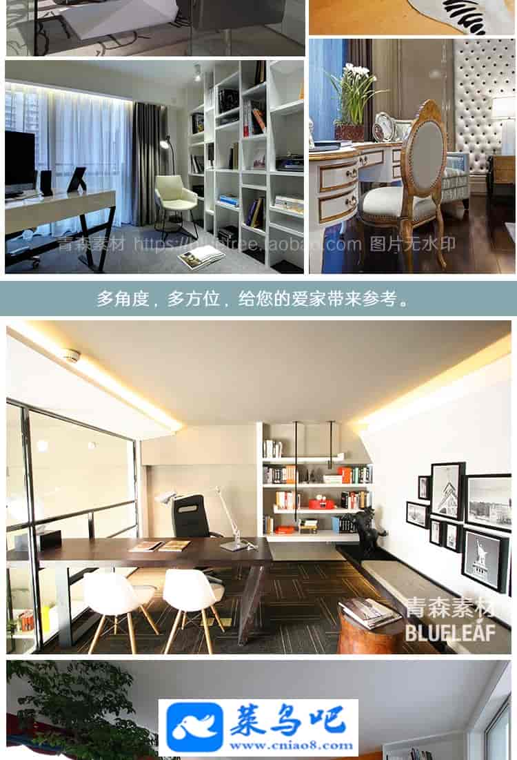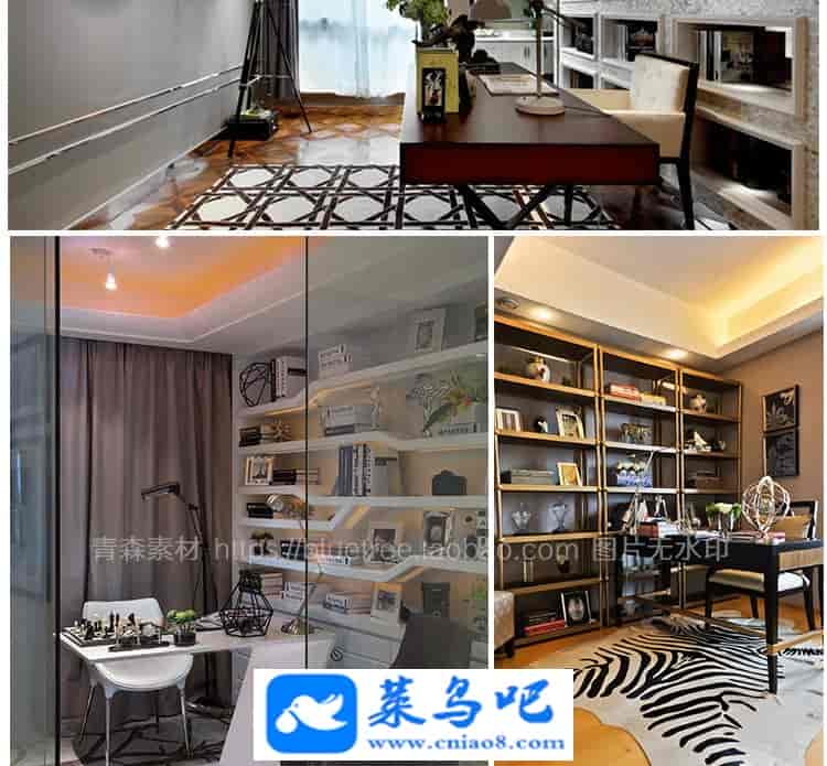 1200张书房装修设计效果图家庭美式简欧式北欧书柜办公书