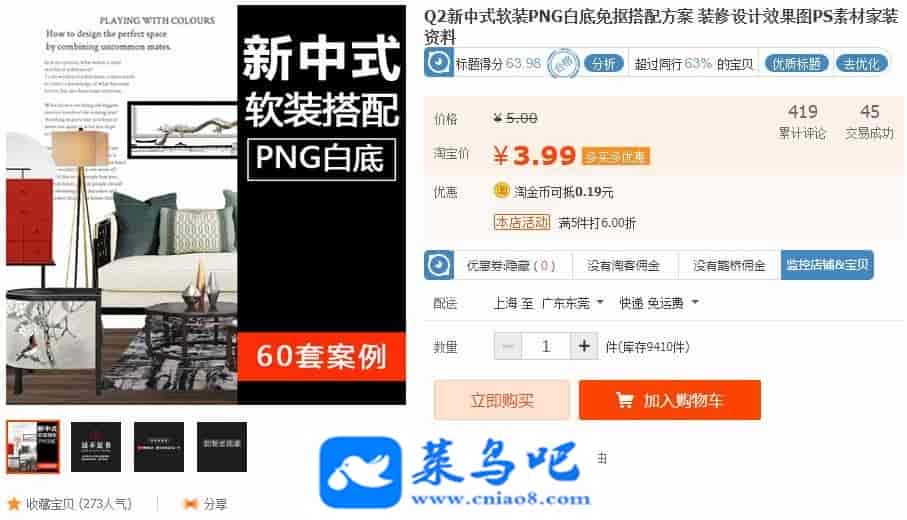 新中式软装PNG白底免抠搭配方案 装修设计效果图PS素材家