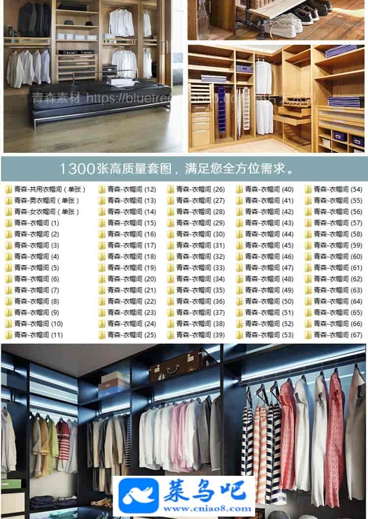 1300张衣帽间装修设计效果图开放式衣柜房子家装卧室现代