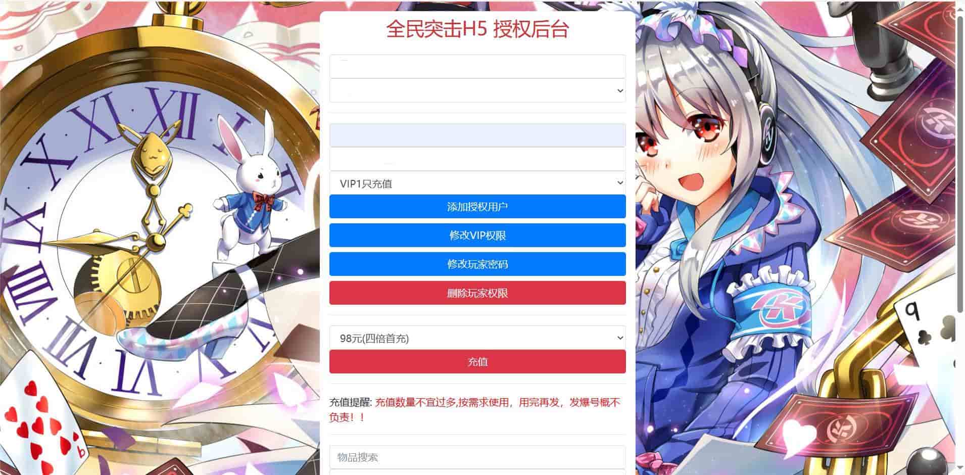[其他源码] H5全民突击后台源码多功能GM授权网页后台GM网页后台工具GM授权物品后台源码