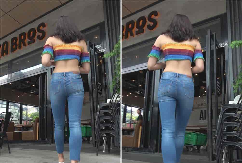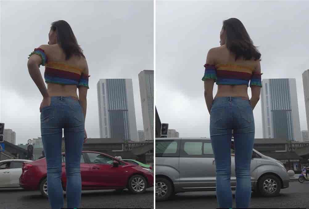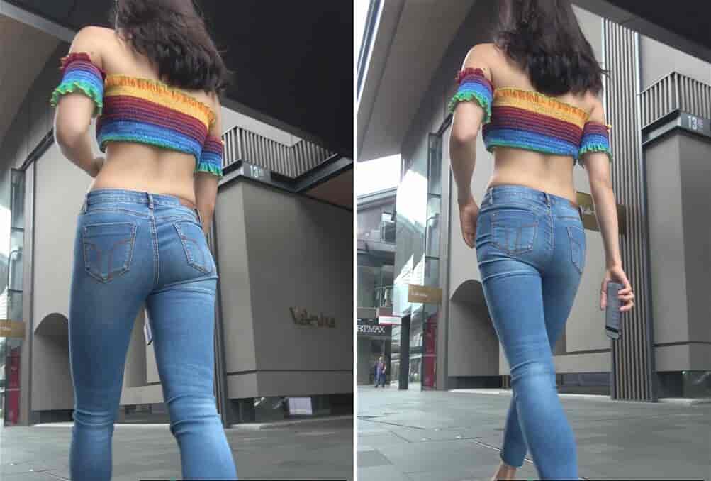 [街拍饭拍] 模拍露腰长腿蓝牛紧身美女《一》[2.96G/MP4]