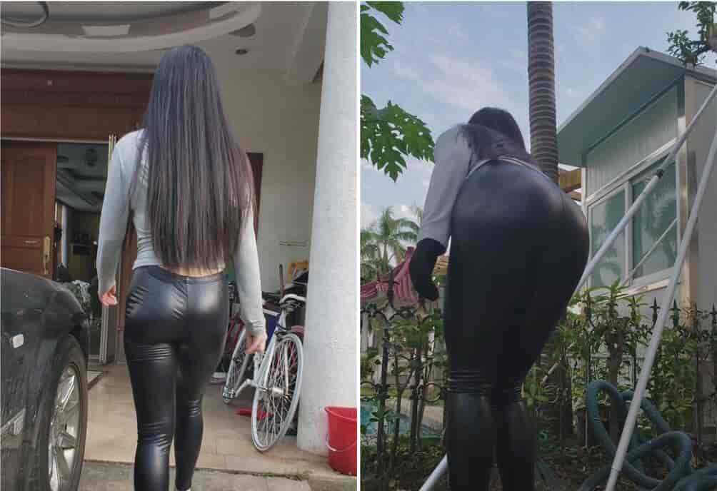 [街拍饭拍] 模拍漂亮的长发皮裤美女《一》[2.6G/MP4]