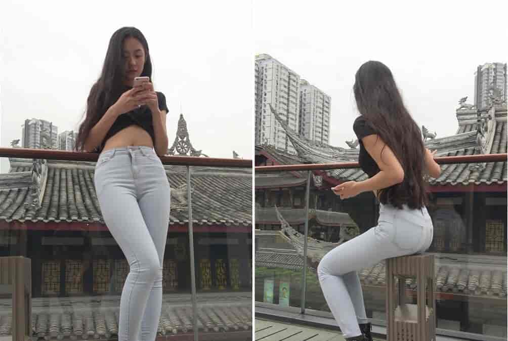 [街拍饭拍] 模拍紧身牛仔长发露腰美女《一》[3.86G/MP4]